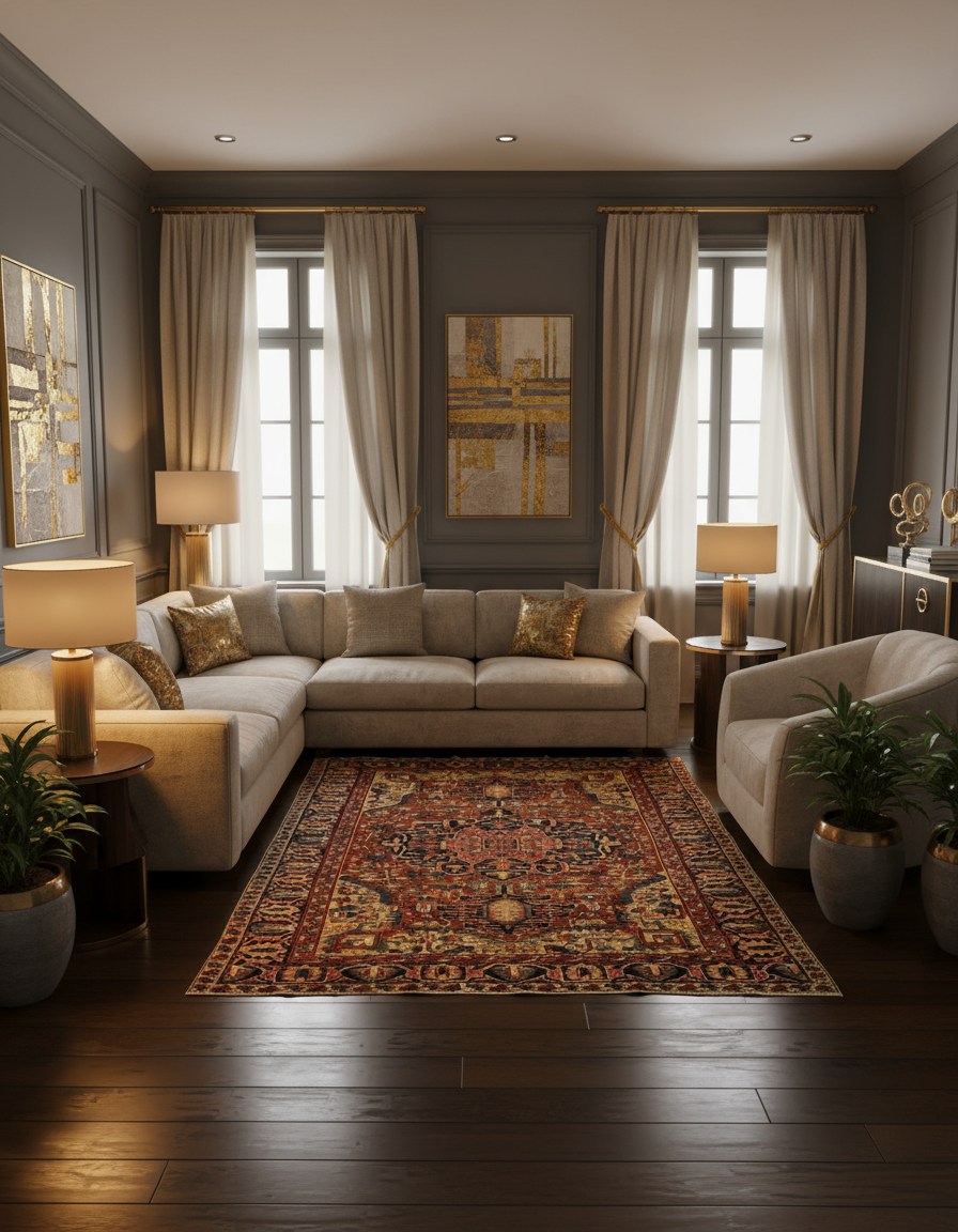 Antique Heriz Rug – 9x11.3 ft (Handmade)